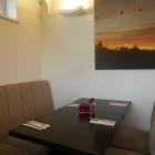 Wir traten ein, da wir uns ein wenig aufwärmen wollten. Eine Mitarbeiterin an der Rezeption war mit einigen Hotelgästen beschäftigt, eine Begrüßung fand daher nicht statt. So suchten wir uns einen freien Tisch am Fenster zum Deich und nahmen Platz.