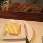 Letztendlich fanden sich über den Abend 4 verschiedene Gläser Wein (0,1), die mich wohltuend durch mein Abendessen brachten. Zum ersten Glas Wein begrüßte mich dann auch die Küche mit Brot und Butter. Salz mußte ich kurz erbitten, dann war das gute Brot mit gesalzener Butter ein Genuss.