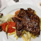 1 x Rinderleber "Lika Art" (vom Grill) mit Zwiebel, Duvec-Reis, Pommes frites und Salat € 11,60