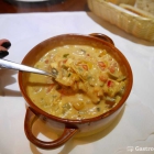 Diese untypische Zubereitung zeichnete auch das Muschelsaganaki (5,80 €) aus, eine unserer Vorspeisen. Saganaki mit Muscheln oder Garnelen kennen (und schätzen) wir mit tomatiger Sudbasis. Hier dominierte der sahnige Geschmack einer hellen Soße und die vielen Paprikastückchen steuerten eine süßliche Note bei. Die wenigen Muscheln gingen im Gemüse unter. Da zeigt mein Daumen klar nach unten.