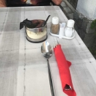 Das Besteck wurde in einer roten eingewickelten Serviette gereicht. Der Löffel für die Nudeln allerdings pur auf den Tisch gelegt, finden wir nicht so Appetitlich. Es wurde dann noch ein Ständer mit Salz-Pfefferstreuern und Zahnstochern an den Tisch gestellt. Schön ist was anderes.