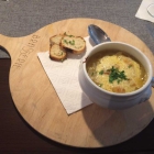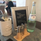 Um 18:30 betraten wir mit Vorfreude die Brasserie. Ein sehr liebevoll gestaltetes Ambiente empfing uns. Rechts eine Theke mit offener Küche dahinter, gegenüber ein langer Stehtisch die Wand entlang und linker Hand 6 Tische. Dahinter der Gang zu den sehr gepflegten Toiletten. Wir hatten telefonisch vorher nach einem Tisch gefragt und wurden freundlich zu unserem Tisch geleitet.