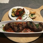 Alle Gerichte konnten überzeugen, meine Frau war von der leicht süßlichen Zwiebelsuppe sehr angetan, auch mein gebackener Schafskäse gefiel sehr. Die Hauptgerichte gefielen uns ebenso gut. Die Spaghetti mit Spinat und Ricotta waren schmackhaft, frisch und saisonal. Mein Spieß auf den Punkt medium. Alles Lecker.