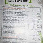 Bald wurden wir von einem leicht verwirrten Servicemenschen (♂ 4,4) entdeck und nach unseren Wünschen befragt, kurz danach erneut von einer Servicedame (4,1) und in direkter Folge von einer weiteren (4,5). Okay, das Konzept für den Service heißt anscheinend ‘happy chaos‘. Da die Kernkompetenz hier wohl das Bier bildet, sollte es dann auch möglichst ein Querschnitt durch das selbstgebraute Angebot sein. Hier bietet sich zur Präferenzfindung “Der Fritz-Fünfer zum Probieren“ (4,50 Euronen) an. Fünf ‘Reagenzgläser‘, jedes gut über den Eichstrich eingeschenkt, auf rustikalem Holzbrett und mit dem Hinweis in welcher Sequenz zu trinken sei, serviert. In aufsteigender Würze und mit wechselnder Süße ein schöner Auftakt. Für Madame war bereits ein Treffer (Das Ratsherren Weißbier, 0,5 L à 3,90 Euronen) dabei. Wegen meiner pathologischen Passion für immer neue Geschmacksnuancen sollte es selbstredend ein weiteres Bier sein. Das zunächst angepeilte Ayinger Celebrator, Bockbier 6,7 Vol.-%, 0,33 L à 3,50 Euronen war leider aus, was der Service natürlich nicht wusste und getreu des Konzepts, nach anscheinend längerer Suche, zerknirscht bat ein anderes Bier zu wählen. Interessant schien auch die Beschreibung zur ‘Meine Hopfenweisse, Tap5‘ 8,2% Vol.-%(!), 0,5 L à 4,90 Euronen aus dem Hause G. Schneider & Sohn, die war dann auch verfügbar. Vergleichsweise schnell kamen