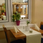 Die sauberen Holztische sind mit Tischläufer, Grünpflanze und Kerze bestückt. Die Papierservietten von der dünnsten Sorte die wohl auf dem Markt zu bekommen ist. Mehr als einmal Lippen tupfen halten die nicht aus. Die Einrichtung ist sauber und gepflegt. Die renovierten Toiletten ebenso.
