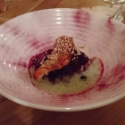 Die kalte Suppe hatte eine Wucht, man schmeckte diverse Gemüsearten heraus, die Konsistenz perfekt, das Highlight sicherlich die Senfkörner und die geeisten Gurkenwürfel. Was mir besonders gefiel. Die Gazpacho variierte mit unterschiedlichen Temperaturen, von kalt, über sehr kalt bis halb gefroren.