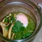Einen „Gruß aus der Küche gibt es nicht“, es geht los mit dem Salat (Vorspeise), heute als Suppe. Ich dachte im Vorfeld entweder an einen knackigen Salat mit geräucherten Entenscheiben oder eine aufgeschäumte Suppe, schön vielleicht mit einer Entenpraline in Szene gesetzt. Aber was uns der Koch mit dem Gang sagen wollte,