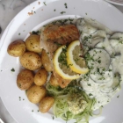 Dann kommt noch das Kabeljaufilet mit Rosmarinkartoffeln und Gurkensalat in Dillsoße in die Bewertung.