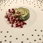 Beim Pre-Dessert bediente sich die Jante-Crew ganz en vogue bei Gemüse und erneut Kräutern. Mir waren allerdings die für sich schon kräftigen Aromen insbesondere von Veilchen, Paprika und Ampfer in ihrer Gesamtheit doch zu schwer. Die separat gereichten Steinpilz-Spielereien fügten einen weiteren starken Geschmack hinzu. Mir fehlte da insgesamt ein bißchen die Frische, aber das war wohl so gewollt.