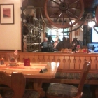 Man betritt die Gaststätte durch einen wintergartenähnlichen Anbau mit quer stehenden Bänken und Tischen in Reihe, die ca. 30 Gästen Platz bieten. Gemütlicher finde ich es in der eigentlichen Gaststube mit weiteren 45 Sitzplätzen, mit Kachelofen im vorderen Bereich und den verschiedenen Sitzgruppen in Nischenform. Die Einrichtung im „Tiroler Zirbelstuben“ – Stil mit hellen kieferfarbenen Holzmöbeln, grob verputzten Wänden und Decken und passender „Kuseler Musikantenland-„ Deko ist urig, behaglich, anheimelnd und lädt zum Verweilen ein.