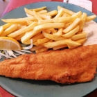 Während ich das übersichtliche Speisenangebot überflog, stand auch schon der Patrone neben mir am Tisch, begrüßte mich als wäre ich seit Jahren Stammgast und riet mir zum heutigen Tagesessen. Eine stattliche Panierfischplatte wurde zusammen mit Pommes und Beilagensalat für bescheidene 11,90 Euro feilgeboten. Mein eigentliches kulinarisches Ansinnen, das knusprig panierte Zanderfilet mit Kartoffelsalat (12,80 Euro) zu verputzen, warf ich daraufhin über Bord und stellte mich der Backfisch-Challenge.