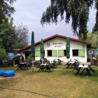 Der Schorleosaurus Rex in mir durfte seinen Winterschlaf fortsetzen. Ich dagegen wurde von einer jungen Servicekraft freundlich in Empfang genommen und platzierte mich gleich am ersten Tisch mit Blick auf den Ausschanktresen. Es war nicht viel los in dem L-förmigen Gastraum des Anglerheims. Ein paar vereinzelte, späte Mittagseinkehrer („Late-Luncher“) vertilgten ihre letzten Happen.