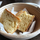 Wir wollten die Vorspeise teilen, die junge Dame hatte sich das gemerkt, mit etwas Brot kamen vorab zwei kleine Tellerchen. Das Brot erinnerte an ein Pane Pugliese, die Laibe liegen zum Aufschneiden bereit an einer Service-Konsole in der Mitte des Wintergartens, es war daher frisch und Krume und Kruste schmackhaft.