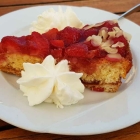 Luftiger und saftiger Boden, mit aromatischen Erdbeeren belegt und ein paar Mandelscheiben garniert.
