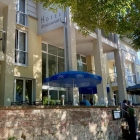 Unsere Freunde haben reserviert, bei den hochsommerlichen Temperaturen an diesem 24. August einen Vierertisch auf der Terrasse.