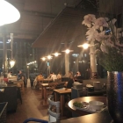 Das umfangreiche Getränkerepertoire ließ sich dagegen in gehefteter Form nachlesen. Zum Standardprogramm gesellte sich noch ein überschaubares Tagesangebot, das neben einem Kürbissüppchen und einem vegetarischen Fladen aus den Steinbackofen – der italienische Sammelbegriff wurde hier anscheinend bewusst umgangen – auch ein kapitales, „gedry-aged-tes“ Schweinekotelett mit Kräuterbutter, Feldsalat und Baguette listete.