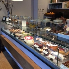 Die Theke platzt von Verlockungen der süßen Art, es gibt eine kleiner herzhafte Karte. Dazu Kaffee, Tee, Wein und was Prickelndes. Innen nur ein paar Bänke und Tische, am Besten sitzt es sich draußen an der Straße. Gemischtes Publikum von der Kinderwagen schiebenden Mutti bis zum älteren Herr ist alles vertreten.