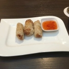 Die drei Frühlingsrollen waren knusprig ausgebacken, aber nicht fettig. Das Fleisch eher sehr klein gewürfelt und durchgebraten. Das Gemüse , was es war können wir nicht sagen war auch sehr klein. Geschmacklich und abgeschmeckt waren sie sehr gut. Die Soße dazu war halt die Sweet-Chilli-Soße die es auch überall zum kaufen gibt sagen wir mal.