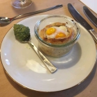 Ein knackig frischer Salat begleitete die Piroggen, die leicht angebraten serviert wurden. Rote Beete war drin, andere mit einer Kalbsfarce gefüllt und letztlich klassisch polnisch welche mit Kartoffel (hervorragend gut mit Muskat abgeschmeckt) und Frischkäse. Das war ein sehr leckerer Hauptgang für mich. Und weil wir alle noch nicht genug geschlemmt hatten noch ein Dessert.