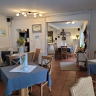 Es ist eingerichtet mit bequemen Stühlen, Korbsesseln und ausreichend großen Tischen. Als Dekoration steht ein alter Küchenherd in der Ecke.