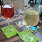 Wir bestellen einen fruchtigen Rose (Herxheimer-Kobnert) aus 2014 für erschwingliche 2,80 das Viertel. Ich entscheide mich für einen exzellenten Chardonnay aus Gimmeldingen, für sensationelle 3,50 das Viertel, der war fantastisch. Dazu jeweils ein kleines Wasser. Als die Getränke serviert wurden, fragte ich nach, warum man hier so großzügig ausschenkt. "Wir sind nicht geizig" teilte mir die Bedienung mit einem Schmunzeln mit. Der Rose hatte dezente Erdbeernoten und Aromen nach Waldbeeren und schmeckte meiner Frau ausgezeichnet. Aber auch der Chardonnay von der Gimmeldinger Meerspinne schmeckte famos.