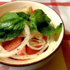Dazu hatte ich mir einen kleinen Tomaten-Zwiebel-Salat bestellt und auch wenn es auf dem Foto vielleicht nicht so ganz rüberkommt, war auch diese Portion für die geradezu lächerlichen 2,50€ mehr als anständig. Anderenorts bekommt man für dieses Geld eine kleine, unansehnliche Plastikschale die man mit dem Salat vollstopft und keine kleine Schüssel, in der man sogar noch mit etwas Basilikum dekoriert hat.