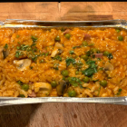 Aber dieser Mut sollte belohnt werden, ein gelungenes Risotto mit frischen Champignons, Erbsen, gekochtem Schinken, Tomatensugo und einem Schuss Sahne.