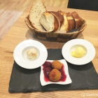 Für die Größe des Lokals (ca. 50 Sitzplätze) waren immerhin 3 Bedienungen eingesetzt, eine so freundlich wie die andere. Alles lief wie am Schnürchen. Es fiel mir auf, dass hier keine strikte Arbeitstrennung bestand. Die Bestellung, das Auftragen der Speisen und das Wegräumen des gebrauchten Geschirrs besorgte die, die grad eine Hand frei hatte. Nie lief eine leer von den Tischen zurück. Da kann man doch den kleinen Fauxpas nachsehen, dass der Suppenlöffel links neben der Gabel, statt rechts neben dem Messer aufgelegt wurde. Für Linkshänder zwar besser, aber ich bin nun mal von der anderen Fraktion. Mein Mineralwasser wurde beim Servieren zwar eingeschenkt, aber ans Nachschenken des geleerten Glases dachte niemand.