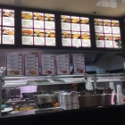 Die Gerichte werden an einer Tafel über der Küche angezeigt. Zusätzlich gibt es noch Aufsteller am Tresen. Es gibt hier Ente, Hühnchen, Scampi, Lamm und auch vegetarisch.