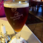 Inzwischen hat der bedienende Mann mittleren Alters unsere Getränkewünsche abgefragt. Es soll denn zuerst einmal je ein Ducksteiner für meine Frau und mich sein (0,3 l für 2,70 €). Der Servicemann wirkt angestrengt, leicht verschwitzt und ist offensichtlich für die beiden Säle und die Terrasse zuständig. Es dauert dann auch eine ganze Weile, bis wir die Ducksteiner bekommen. So richtig zügig sind wir den Abend über nicht bedient worden.