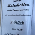 – Nordseeteller (Limandes-, Steinbeißer-, Silberlachsfilet) mit Kräuterbutter, Bratkartoffeln und Salat vom Buffet zu 14,50 €.