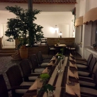 Beim Betreten des Hotels werden wir von freundlichen Damen an der Rezeption begrüßt. Wir gehen durch's Foyer ins Restaurant "Ausblick" und werden dort von einer jungen Dame begrüßt, der wir unseren Wunsch nach einem Sechsertisch vortragen. Wir haben nicht reserviert, was kein Problem darstellt. "Könnten wir auch im Restaurant da hinten Platz nehmen?" fragen wir die junge Dame noch, denn wir haben hinter dem Restaurant "Ausblick" eine einladende "Piazza" mit Olivenbaum, Speibrunnen und Glaskuppeldach entdeckt – die Piazza Leone. Das sei alles kein Problem, hören wir, Preise und Speisen seien in der Piazza Leone und im Restaurant "Ausblick" identisch, wir könnten uns einen Sechsertisch aussuchen.