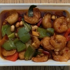 Auch die Gong-Bao-Garnelen, mit frischen Erdnüssen und großen getrockneten Chilischoten (18,90), waren deutlich süßer als beim Kollegen und schmeckten eher wie das, was einem überall in Deutsch-China unter dem Stichwort süß-sauer angeboten wird. Meine Frau war allerdings auch hier sehr angetan, bis auf die großen Chilis, die sie alle aussortiert hat. Meine Favoriten sind die aber auch nicht, weil sie erstens keine Schärfe ans Essen abgeben und zweitens sich beim Kauen wie Hartplastik anfühlen. Dafür lieben wir beide den Biss von gekochten frischen Erdnüssen.