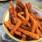 Beide haben wir die Süßkartoffel-Frites ausgesucht, bei dem Fleisch im Preis inbegriffen, bei den Burger zu EUR 3,--.