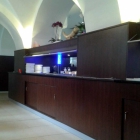 Die Einrichtung ist auf die Bewirtung großen Menschengruppen eingestellt: Links und rechts sind die Plätze in langen Reihen angeordnet. In der Mitte befindet sich eine lange Theke (mit Lücken als Durchgang), in der die Schüsseln für das Büffet versenkt sind. Als Kunde kann man so die Speisen „umkreisen“.