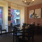 Es ist ein kleines schnuckeliges Lokal mit nicht sehr vielen Plätzen. Die Bestuhlung besteht aus dunklem Holz, Sitzkissen gibt es leider nicht.