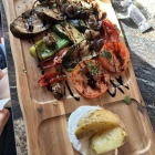 Unsere Freundin bestellte einen Salat der Saison mit Butter Croutons, Parmesan, Hähnchenbrust und frischem Baguette Brot, ihr Mann wählte ein Surf & Turf - gegrilltes Rumpsteak(200g) mit geschälten Riesengarnelen, Steakpfeffer und Kräuterbutter, dazu Salat und Backkartoffelspalten mit Sourcreme.