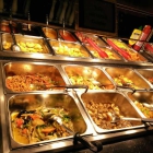 - dem typischen China-Thai-Buffet mit allerlei fertigen Gerichten von süß-sauer bis scharf, auch zwei Suppen, Salat und Dessert (Obst, Eis, Pudding, Kuchen, etc),