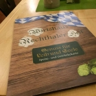 Dazu gab es ein Körbchen mit einer frischen Breze und Baguettbrottscheiben. Hier hätten wir uns statt diesen Scheiben lieber das in der Karte stehende Holzofenbrot gewünscht. Finden wir hier passender dazu. Das Baguettbrot war jetzt aber trotzdem nicht schlecht, frisch aufgeschnitten, knuspriger Rand und geschmacklich auch völlig in Ordnung. Die Breze war mit sehr wenig Salz versehen, außen knusprig und innen weich, passte.