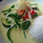 Wir ordern aus dem ansprechenden, hauptsächlich vietnamesisch orientierten Speisenangebot: ein 1) Rindfleisch Gelbcurry (Nr. 43), ein 2) vegetarisches Gelbcurry (Nr. 94) und 3) gebratene Nudeln mit frittierten Bällchen aus Hühnerfleisch (22). Getränke nimmt man sich selbst aus dem Kühlschrank neben der Theke. Leider ist das Angebot nicht sehr umfangreich. Nach erstaunlich kurzen 10 Minuten ist das Essen gar. Die beiden Gelbcurry-Gerichte (für 6,50 Euro und 7,50 Euro) ähneln einander stark, nur mit und ohne Fleischzugabe. Alle Bestandteile haben noch guten Biss, das Gemüse überzeugt durch frische Knackigkeit, für die würzige, leicht scharfe Curry-Kokosnuss-Sauce ist der Reis ideal. Unser Freund hat sich dagegen für gebratene Nudeln mit frittierten Bällchen entschieden (8,00 Euro). Alle Portionen sind geschmacklich topp, überzeugen durch eine aromatisch-angenehme Schärfe und machen wirklich pappsatt.