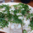 Auch zu dritt hatten wir einen schönen Sonntag Abend. Vorspeisen: Nochmals der Spargelsalat und für mich gebackener Ziegenkäse, Babyblattspinat und Chutney. Mein Mann und ich wählten bei diesem Besuch Flammkuchen mit frischem Spargel, Ziegenfrischkäse, gerösteten Pinienkernen und Rucola. Mein Bruder das Wiener Schnitzel mit wunderbar krossen Bratkartoffeln und Gurkensalat (Bilder sind unten angefügt). Alles wieder sehr gut.