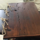 Die Speisekarte besteht aus zwei Holzbretter, die mit Schnüren zusammengehalten werden. Im Inneren befinden sich laminierte Blätter . Die Karte ist wirklich anders. Nicht so überladen wie man sie vom Griechen her kennt. Hauptsächlich Fisch und Fleischgerichte, ohne die typischen Grillteller. Den kann man sich hier selber zusammenstellen. Bei Beilagen darf man auch selber aus Auswählen.