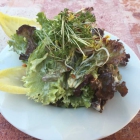 Ein Paprika-Feta-Salat. Das passte gut zum sehr warmen Abend! Und auch wenn es einfacher Löffel war, hier erfreute einfach die Geste. Die meisten Dorfgasthäuser wüssten wahrscheinlich mit einem amuse gueule ncihts anzufangen. Und schmecken tat der Salat gut!