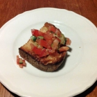 Als Gruß der Küche kam halbes Bruschettabrötchen an. Nett gewürzte Tomatenwürfel waren mit ein paar Gurkenwürfeln in Olivenöl darauf. Es war jetzt keine Offenbarung aber es hat durchaus geschmeckt. Und freundlich und toll finde ich so was in dieser Preisklasse obendrein.
