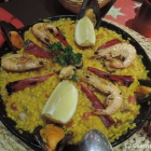 Die Paella kam in einer typischen Pfanne und roch angenehm nach Meeresgetier, mit dem sie auch belegt war (Garnelen, Miesmuscheln). Neben ordentlich Zwiebel und Knoblauch (mir persönlich war das des Guten zu viel) ließen sich diverse Hühnerfleischstücke, Tintenfischringe sowie Kaninchenteile darin ausmachen. Der fast schon penetrante süßliche Schalentiergeschmack erschlug leider den handwerklich gut gemachten Rest der Pfanne. Von der Menge her war das in Ordnung. Am omnipräsenten „Marisco-Aroma“ erschöpfte sich unsere Paella-Lust dann doch recht schnell und unser Genussfaktor hielt sich im Rahmen. Geschafft haben wir sie dann auch nicht ganz.