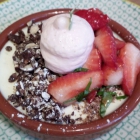 -Hagebutten-Buchteln mit Vanillesoße und Apfelstreifen (5,50 €)