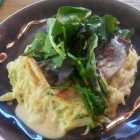 Wir hatten zudem am Tisch den Burger, Nudeln mit Lachs und Garnelen, Bachsaibling auf Spargel-Risoninudeln mit gebratenem grünen Spargel - alles mit großem Lob belegt.