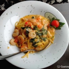 Linguine mit Spinat und Scampi (9,50)