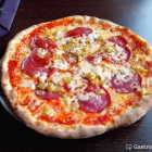 Pizza Salame mit Peperoni, Knoblauch und doppelt Käse (8.- +1,80)