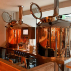 Vor dort führt eine Treppe in den ersten Stock, wo einen moderne, behaglich ausgeleuchtete Räume und natürlich ein toller Blick auf die blankpolierten Kessel des offenen Sudhauses erwarten, ein stimmungsvolles Entrée auf ganzer Linie.